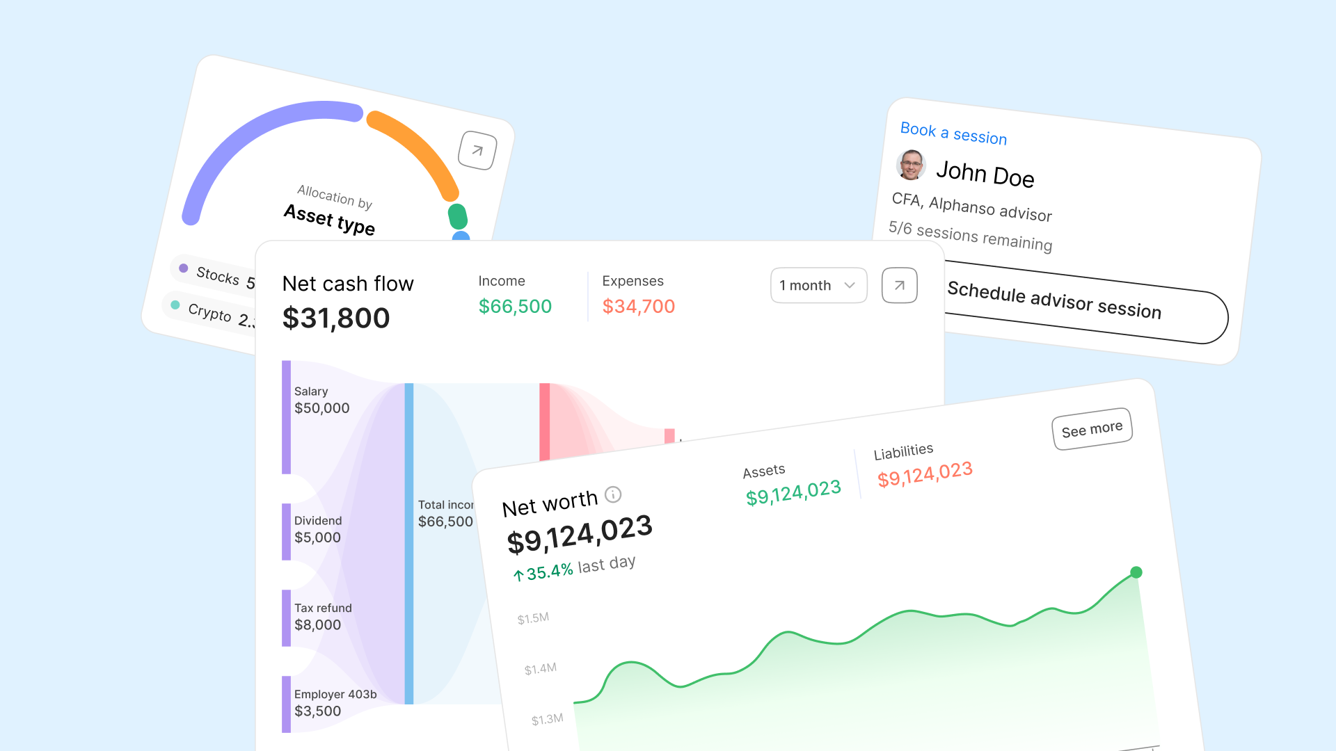 - Multiple data sources (brokerages, banks, retirement accounts)